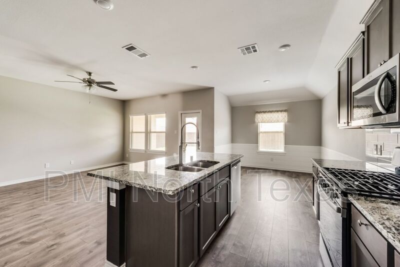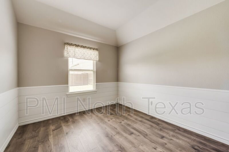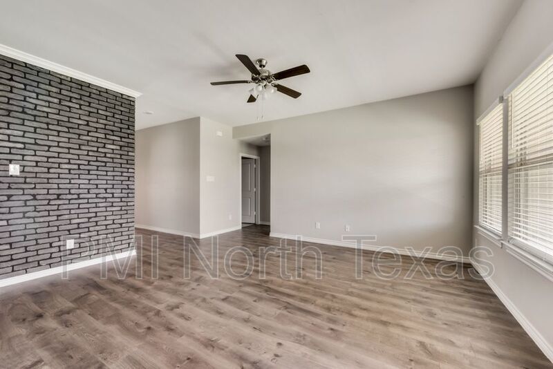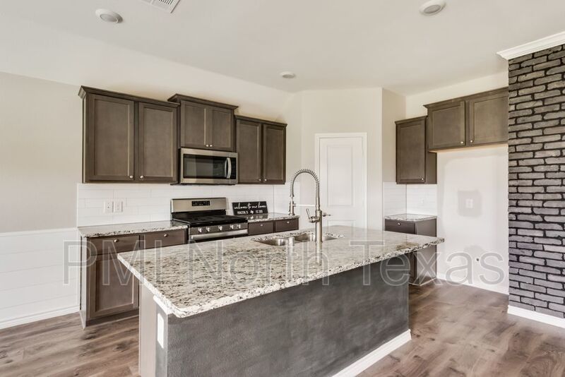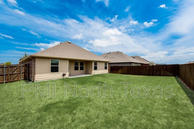 Adorable single story 3 year old home with stunning curb appeal! Tons of features and extra details! Bright and neutral paint tones give the home a fresh and inviting feel. Rustic laminate wood floors throughout the main living area with trendy black brick accent wall. Open floor plan with master separated from other bedrooms. Kitchen boasts granite countertops, large island stainless steel appliances and gas stove. Fenced backyard with covered patio. Small pets under 25 lbs. $250.00 pet deposit $100.00 non-refundable pet processing fee per pet. $200.00 lease coordination fee due at lease signing. All PMI North Texas tenants are enrolled in the Resident Benefits Package (RBP) for $35.00 per month which includes credit building to help boost your credit score with timely rent payments, $1M Identity Protection, HVAC air filter delivery, utility connection concierge service, our best-in-class resident rewards program, and much more!