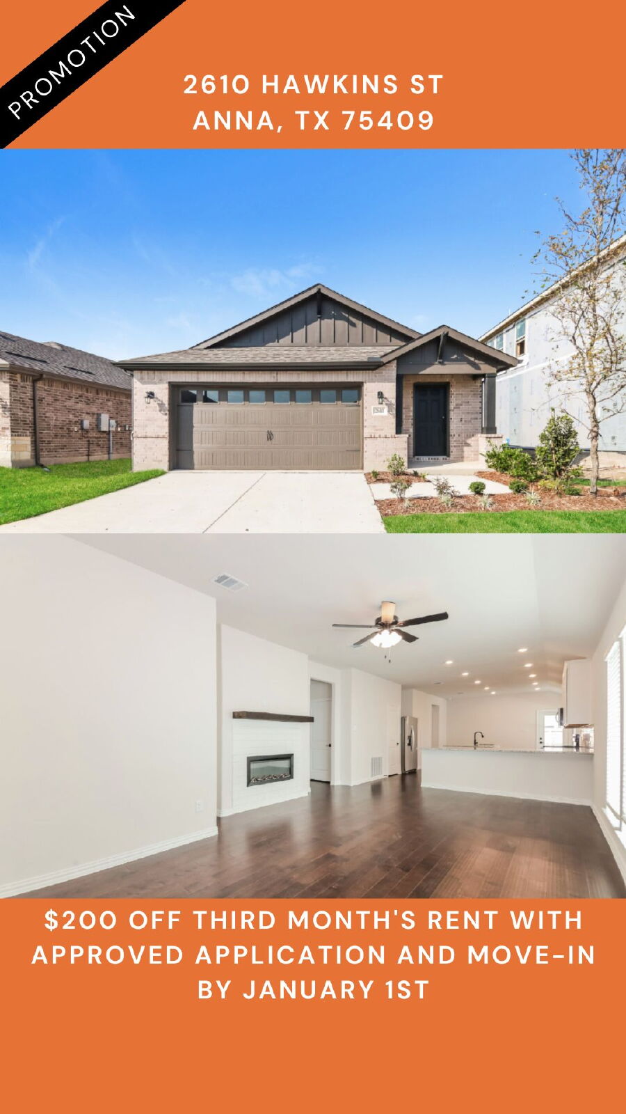 ***$200 Off third month's rent with approved application and move-in by January 1st*** NEW BUILD!!! Charming 3-bed, 2-bath home in Anna. Designed with the latest trends in mind, this home showcases granite countertops and rich hardwood flooring. Master suite features 2 walk-in closets, large shower, and dual vanities. Beautiful kitchen boasts stainless steel appliances with FRIDGE included, white subway tile backsplash, prep island, and plenty of cabinet and counter space. Open concept living and dining space is perfect for entertaining, accented by a lovely fireplace. Convenient laundry room with washer and dryer included! Property is equipped with an electric vehicle charger in the garage! Enjoy a well-appointed amenity center featuring a pool, pickleball courts, and playgrounds. Virtually walk through this property room by room via our 3D Home Tour! Link available on our website. Pets case by case. $250.00 pet deposit $100.00 non-refundable pet processing fee per pet. $200.00 lease coordination fee due at lease signing. Tenants have the option to enroll in a Resident Benefits Package (RBP) for $35.00 per month which includes credit reporting for on-time rent payments, $1M Identity Protection, HVAC air filter delivery and more!