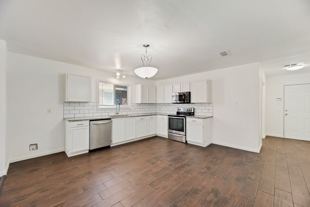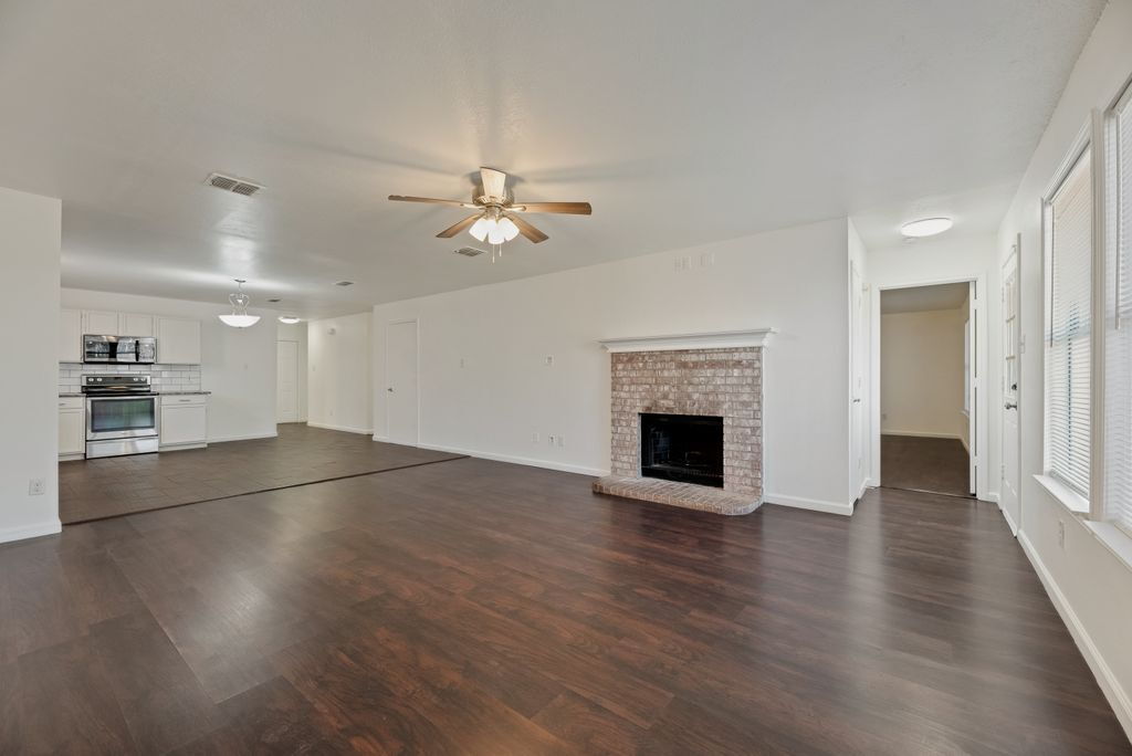 Charming 4-bed, 2-bath single-story home in Little Elm, located just one block from E Eldorado Parkway. This open-concept floorplan features neutral paint tones and laminate wood flooring throughout, no carpet! The kitchen boasts stainless steel appliances and white subway tile backsplash. The open living and dining space is accented by a classic brick fireplace, perfect for entertaining! All bedrooms are equipped with ceiling fans. Enjoy relaxing in the large fenced backyard. Pets case by case. $250.00 pet deposit $100.00 non-refundable pet processing fee per pet. $200.00 lease coordination fee due at lease signing. Tenants have the option to enroll in a Resident Benefits Package (RBP) for $35.00 per month which includes credit reporting for on-time rent payments, $1M Identity Protection, HVAC air filter delivery and more!